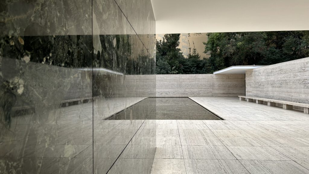 Der nächste Tag beginnt wie der letzte endete: mit Architektur. Nur ist es nicht der eher verspielte Modernisme von Gaudí, sondern klare Linien, klare Konturen, klare, fließende Räume aus der Bauhaus-Schule – der Pavillon Mies van der Rohe oder auch der „Deutsche Pavillon“ für die Weltausstellung 1929 in Barcelona.