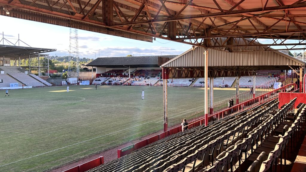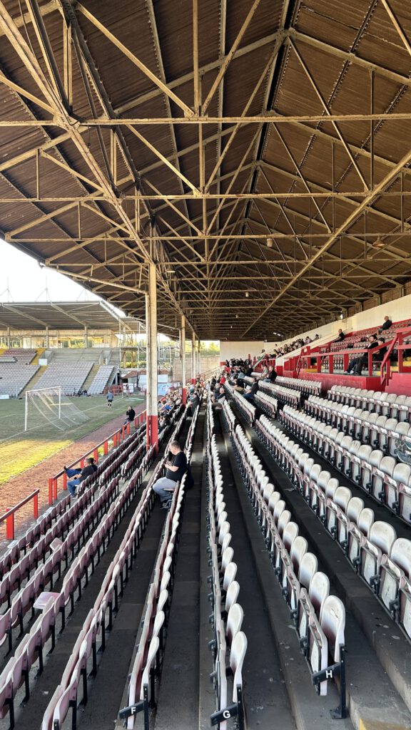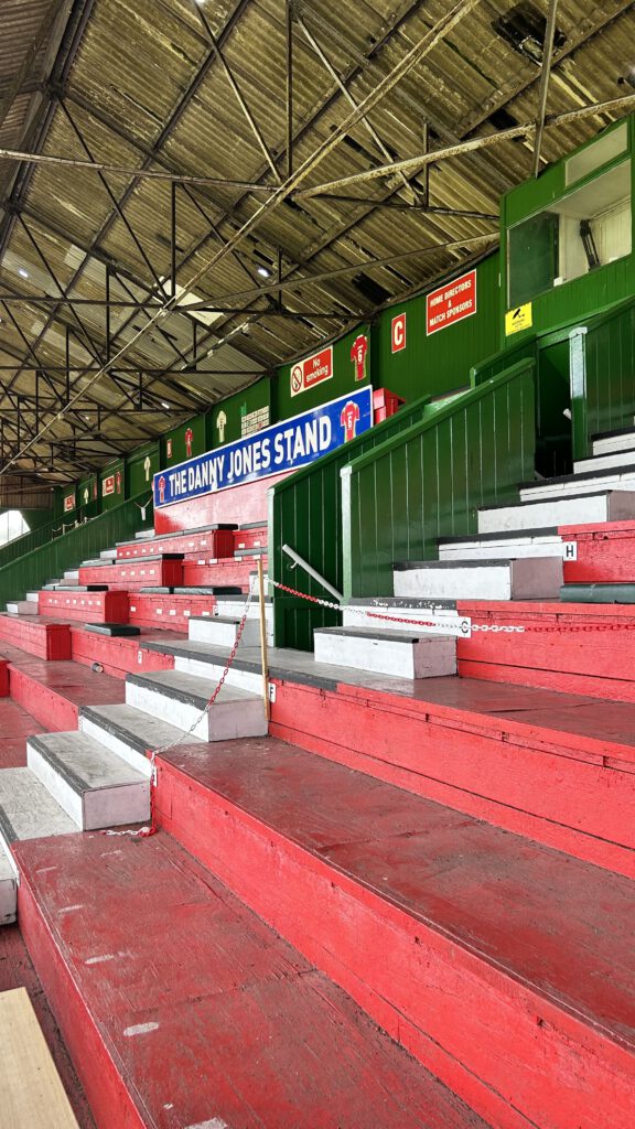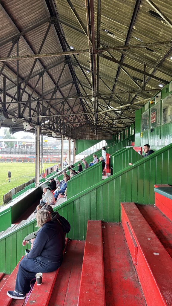 Am Cougar Park gefällt vor allem die wunderschöne alte Holztribüne, eine der wenigen noch erhaltenen in GB, eine Perle.
