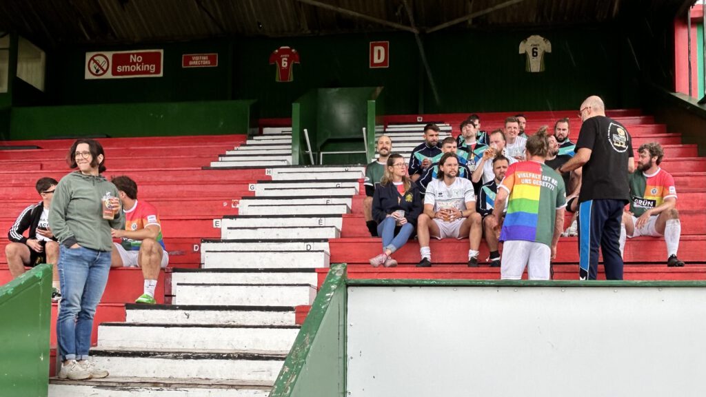 Und schon starten wir in unseren letzten Tag, es ist wahrlich ein kurzer Kurztripp. Auf geht’s nach Keighley. Spiel zwei und selbstverständlich sind wir auch hier dabei. Eccleshill United FC spielt gegen den PSV. Die Angelegenheit ist mit 1:7 etwas eindeutiger, der hervorragenden Stimmung indes kann das nix anhaben. Im Gegenteil, ich sehe nur glückliche Gesichter.