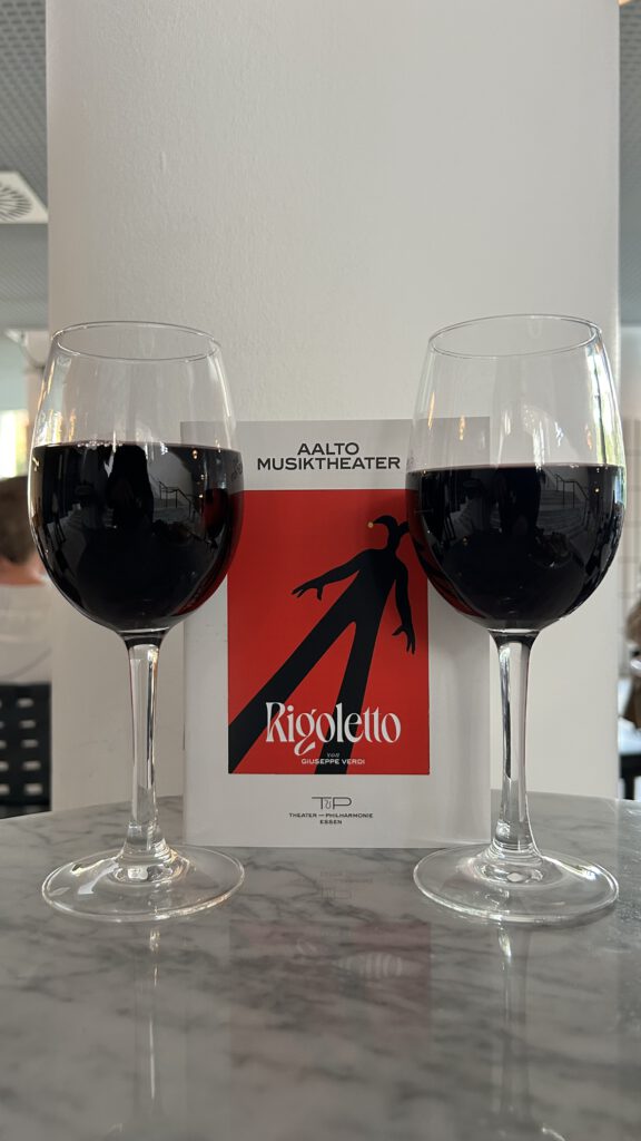 Abends gemeinsam ins Aalto, es schwingt einiges an Aufregung mit, an positiver. Ich liebe das Aalto und ich hoffe und wünsche mir natürlich, dass sich diese Faszination auch auf Bine überträgt. So ist es dann auch, das Aalto zieht einen in den Bann und der Rigoletto, eine der in meinen Augen beste Verdi-Opern, ebenfalls.