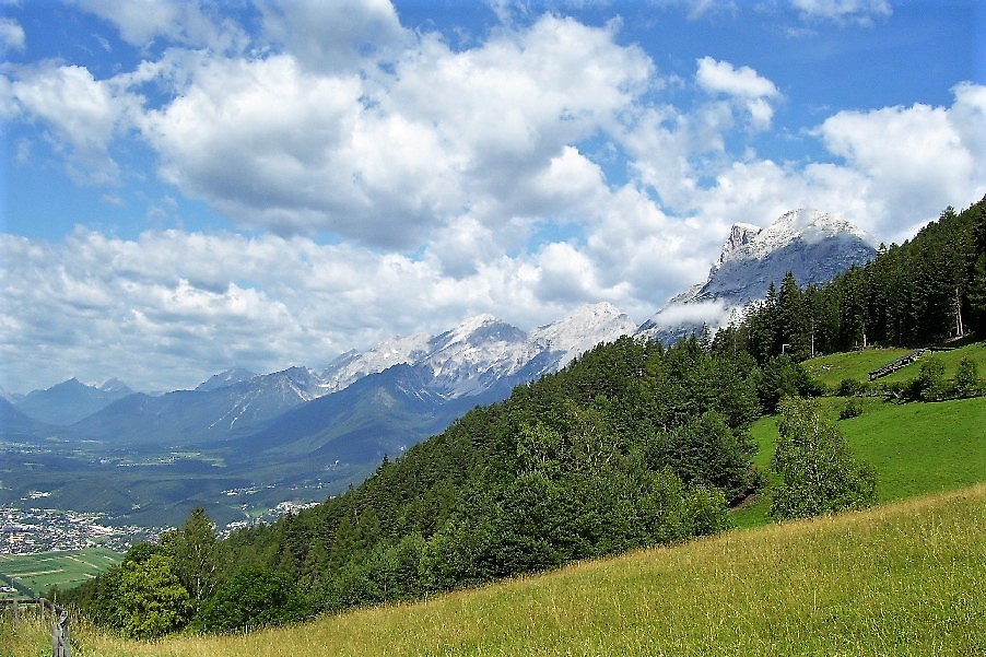 Das gebuchte Landhotel „Tyrol“ wirbt mit phantastischer Lage in Nordtiroler Bergwelt und grandiosem Blick aufs mittlere Oberinntal. Selten hat eine selbstgewählte Lagebeschreibung eines Hotels so gestimmt. Phantastisch ist untertrieben, ganz klar. Schon allein der Blick auf das Panorama erfüllt mit seliger Zufriedenheit. Dazu kommt unendliche, absolute Stille in 1250 m Höhe.