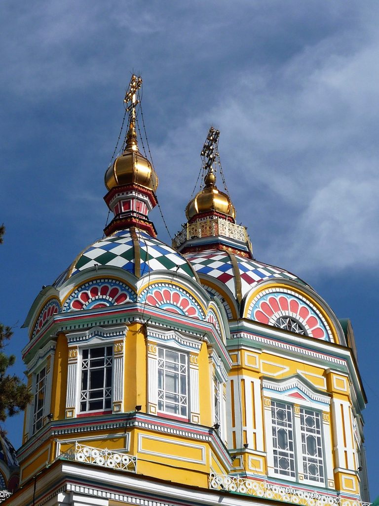 Morgens sind wir also in Almaty und beginnen unsere Stadttour glücklicherweise mit einem kräftigen Frühstück. Für den einen oder anderen gab es heute das erste Mal Pelmeni und damit beginnt die Tour gleich mit einer richtigen Neuentdeckung. Diese gefüllten Teigtaschen kenne ich schon, hungrig bin ich zudem nicht, aber Kaffee ist wichtig. Und was bekomme ich? Irgendwas Lösliches mit Milch und Zucker inklusive. Mit Kaffee hat das nichts zu tun, aber egal, als hinreichend gestärkt und einigermaßen munter können wir uns jetzt betrachten und so geht es zunächst erst mal quer durch Almaty.