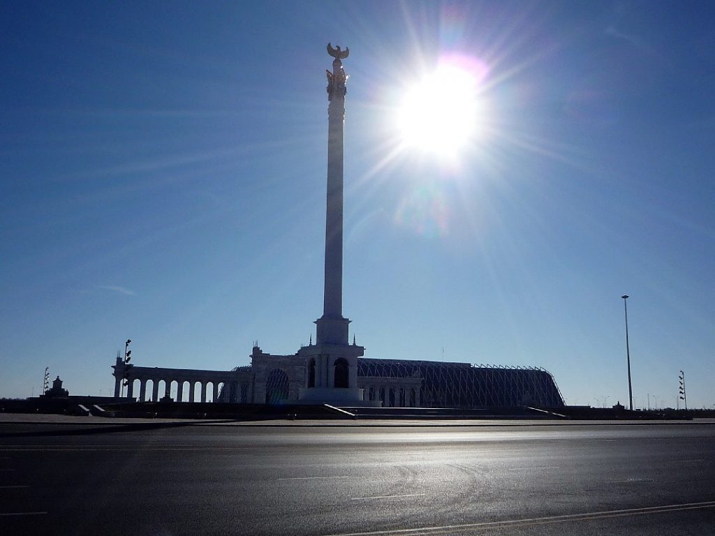 Das Frühstück beinhaltet heute sogar einen akzeptablen Kaffee, trotzdem bleibt grundsätzlich festzuhalten, dass Kasachstan offensichtlich über keinerlei Kaffeekultur verfügt. Und danach Astana, die neue Hauptstadt. Beim Kurven durch die Stadt wird deutlich, mit welcher Konsequenz diese Stadt am Reißbrett geplant worden ist und es lässt sich erahnen, wie die Stadt weiter wachsen wird, wenig wird übrig bleiben von der alten Stadt, die es ja hier im Kern noch gibt. Platz ist ja genug hier, rings um die Stadt ist Steppe, in die trefflich hineingewachsen werden kann.