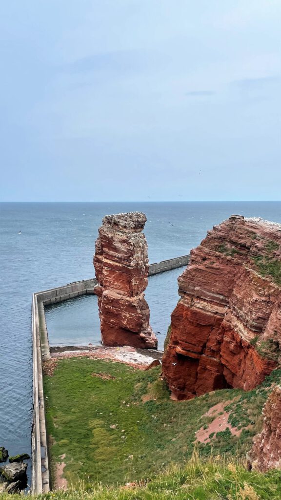 Am nächsten Tag steht ein ausgiebiger Inselrundgang an, wir lernen dabei noch einmal im Nachhinein zu schätzen, welch prächtiges Wetter wir gestern hatten. Unangenehm ist’s heut, ziemlich windig und später fängts auch an zu regnen, ein Kontrast zum Sonnenschein des Vortages. Aber lässt sich alles aushalten und so sammeln wir jede Menge positive Eindrücke von der Insel inkl. der Nachbarinsel Düne. Später noch ein Helgoländer Eiergrog, den man auf Helgoland getrunken haben muss, so wird berichtet. Geiles Zeug.