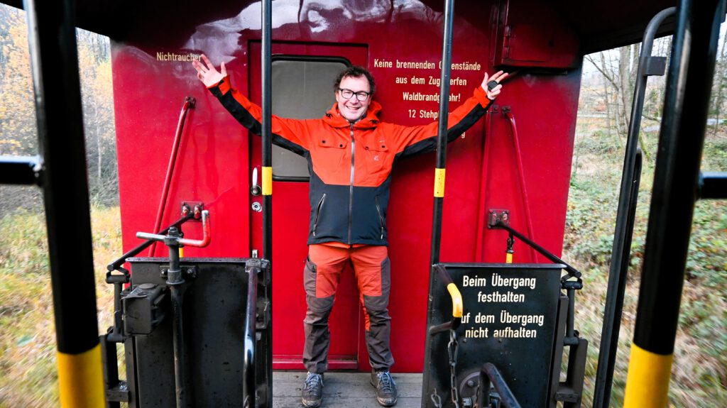 Hatten wir ja schon immer mal vor, mit der HSB auf den Brocken zu fahren oder auch runter. Und nun kam die Gelegenheit, Robin hatte noch einen Gutschein zur Mitfahrt auf der Lok zu verbraten und so buchten wir uns kurzerhand als „normale“ Passagiere mit dazu, also jetzt nicht auf der Lok, sondern ganz normal mit Stehplatz zwischen den Waggons, um auch möglichst viel von der Atmosphäre mitzunehmen. Cool wars.